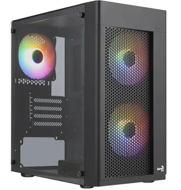 Boîtier : AEROCOOL Hexform G v2 — design gamer moderne avec airflow optimisé et éclairage RGB subtil